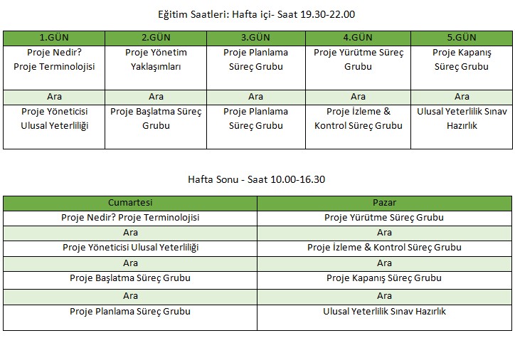 Kimler Başvurabilir: Proje yönetimi alanında kariyer hedefleyen bireyler, her sektörden proje paydaşları, iş fikrini projelendirmek isteyen girişimciler, proje yönetimi konusunda genel bilgi edinmek isteyen herkes. Bu program hızlandırılmış bir program olduğu için katılımcıların daha önce temel düzeyde proje yönetimi eğitimi almış olması tavsiye edilir.